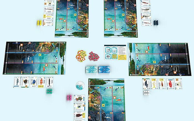 Flossenschlag – Aus dem Flügelschlag-Universum ist ein Kennerspiel, das dich in die faszinierende Welt der Süßwasserfische entführt. Es dreht sich hier alles um Aquarien, Artenvielfalt und clevere Ressourcenplanung. Jede Fischkarte hat besondere Eigenschaften, Lebensraumansprüche und Interaktionen mit anderen Arten. Du sammelst Futter, verbesserst deine Becken, nutzt Spezialfähigkeiten und planst deine Züge taktisch, um Synergien zu schaffen.