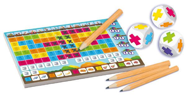 In Noch mal! – Kids würfeln die Kinder Farben und Symbole, die sie auf ihrem eigenen Spielblock ankreuzen. Ziel ist es, Reihen und Spalten zu vervollständigen und möglichst viele Sterne zu sammeln. Die Regeln sind bewusst reduziert und leicht verständlich, sodass auch jüngere Spieler sofort loslegen können. Durch die bunten Felder und die einfache Mechanik entsteht ein spannendes Wettrennen um die meisten Punkte