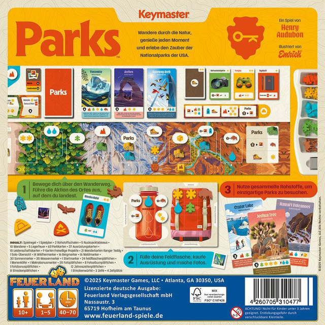 Parks – 2nd Edition ist die überarbeitete Neuauflage des atmosphärischen Brettspiels von Henry Audubon, in dem ihr die schönsten Nationalparks der USA besucht, Ressourcen sammelt und Erinnerungen in Fotos festhaltet. Mit neuen Illustrationen, verbessertem Spielfluss und modularem Aufbau bietet diese Edition noch mehr Spieltiefe und Abwechslung.
